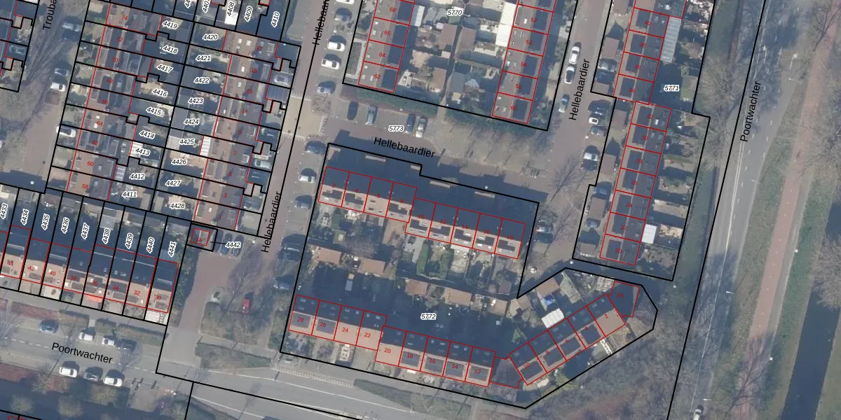 Het perceel waarop Hellebaardier 10 staat heeft een oppervlakte van 3352 m². Dit is een zeer groot perceel. De perceeloppervlakte wordt geregistreerd door het Kadaster. Gedetailleerde informatie over de maten van dit perceel kunt u vinden in het rapport Kadastrale kaart met maatvoering van Hellebaardier 10.