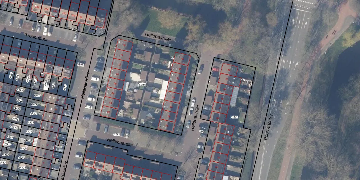 Het perceel waarop Hellebaardier 52 staat heeft een oppervlakte van 2294 m². Dit is een zeer groot perceel. De perceeloppervlakte wordt geregistreerd door het Kadaster. Gedetailleerde informatie over de maten van dit perceel kunt u vinden in het rapport Kadastrale kaart met maatvoering van Hellebaardier 52.