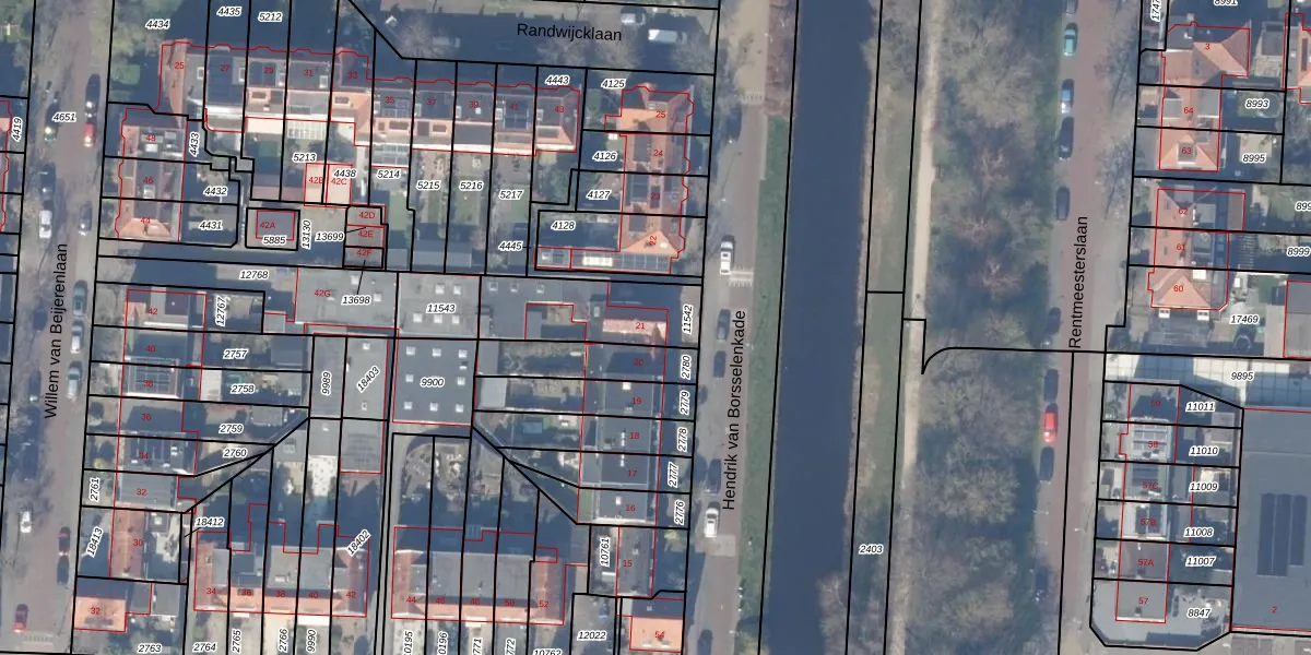 Gebruik de zoekbalk of klik op een perceel voor informatie over de adressen binnen dit perceel.
