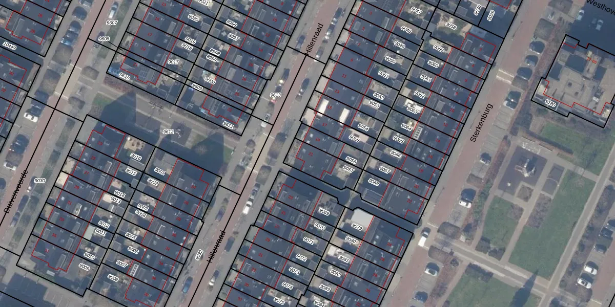 Gebruik de zoekbalk of klik op een perceel voor informatie over de adressen binnen dit perceel.
