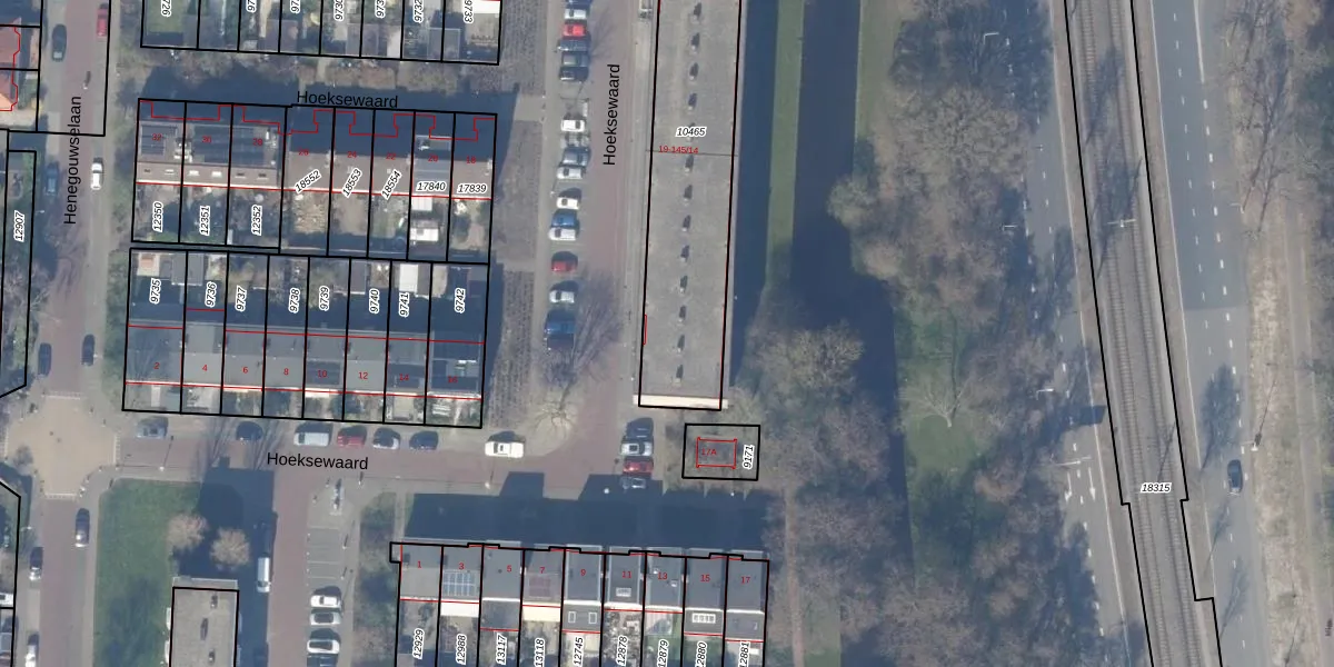 Het perceel waarop Hoeksewaard 45 staat heeft een oppervlakte van 946 m². Dit is een groot perceel. De perceeloppervlakte wordt geregistreerd door het Kadaster. Gedetailleerde informatie over de maten van dit perceel kunt u vinden in het rapport Kadastrale kaart met maatvoering van Hoeksewaard 45.