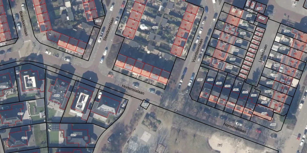 Het perceel waarop Hortensialaan 30 staat heeft een oppervlakte van 2710 m². Dit is een zeer groot perceel. De perceeloppervlakte wordt geregistreerd door het Kadaster. Gedetailleerde informatie over de maten van dit perceel kunt u vinden in het rapport Kadastrale kaart met maatvoering van Hortensialaan 30.