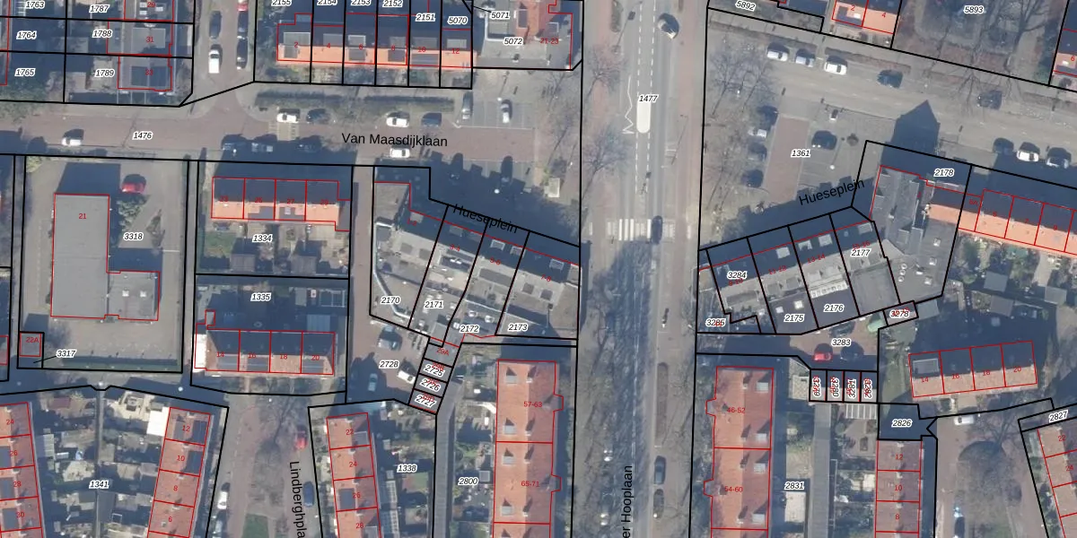 Het perceel waarop Hueseplein 8 staat heeft een oppervlakte van 235 m². Dit is een middelgroot perceel. De perceeloppervlakte wordt geregistreerd door het Kadaster. Gedetailleerde informatie over de maten van dit perceel kunt u vinden in het rapport Kadastrale kaart met maatvoering van Hueseplein 8.