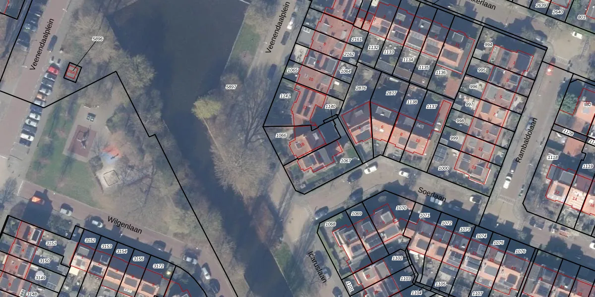 Gebruik de zoekbalk of klik op een perceel voor informatie over de adressen binnen dit perceel.