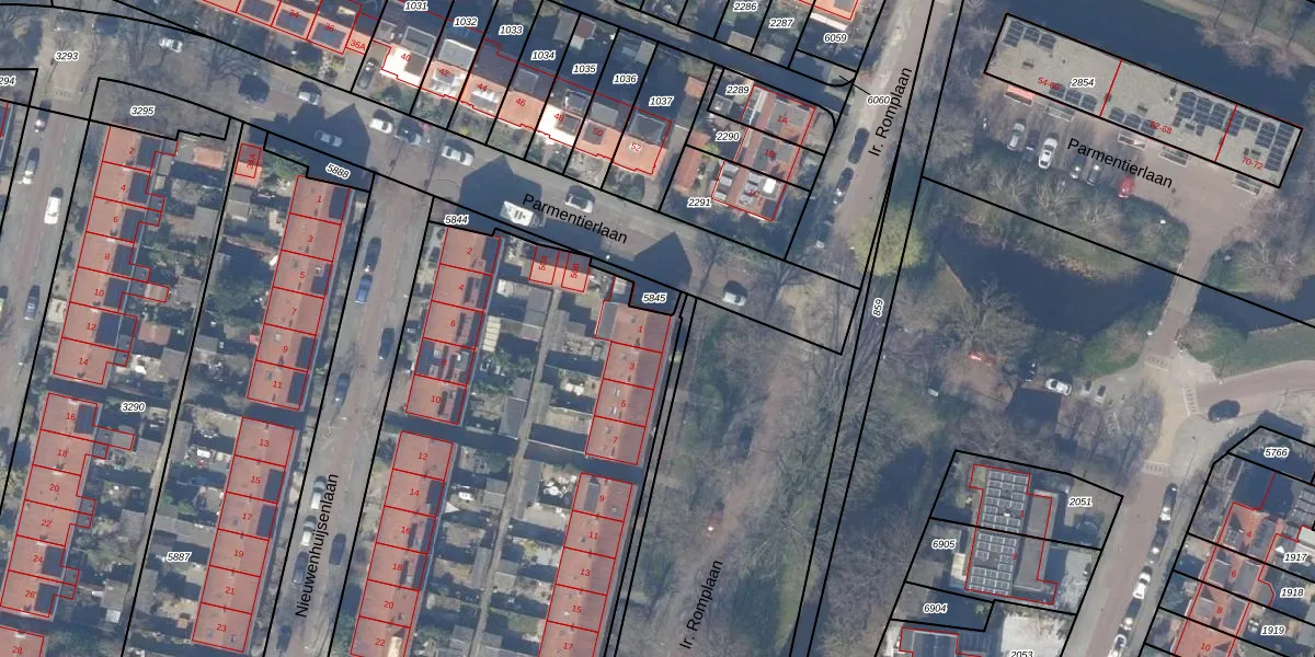 Het perceel waarop Ir. Romplaan 1 staat heeft een oppervlakte van 6493 m². Dit is een zeer groot perceel. De perceeloppervlakte wordt geregistreerd door het Kadaster. Gedetailleerde informatie over de maten van dit perceel kunt u vinden in het rapport Kadastrale kaart met maatvoering van Ir. Romplaan 1.