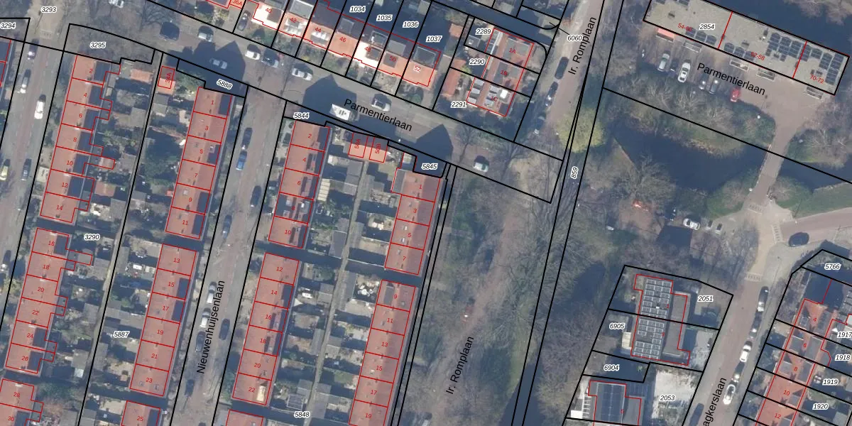 Het perceel waarop Ir. Romplaan 3 staat heeft een oppervlakte van 6493 m². Dit is een zeer groot perceel. De perceeloppervlakte wordt geregistreerd door het Kadaster. Gedetailleerde informatie over de maten van dit perceel kunt u vinden in het rapport Kadastrale kaart met maatvoering van Ir. Romplaan 3.