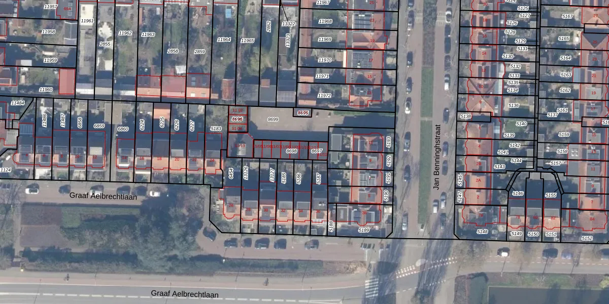 Het perceel waarop Jan Benninghstraat 11-10 staat heeft een oppervlakte van 107 m². Dit is een middelgroot perceel. De perceeloppervlakte wordt geregistreerd door het Kadaster. Gedetailleerde informatie over de maten van dit perceel kunt u vinden in het rapport Kadastrale kaart met maatvoering van Jan Benninghstraat 11-10.