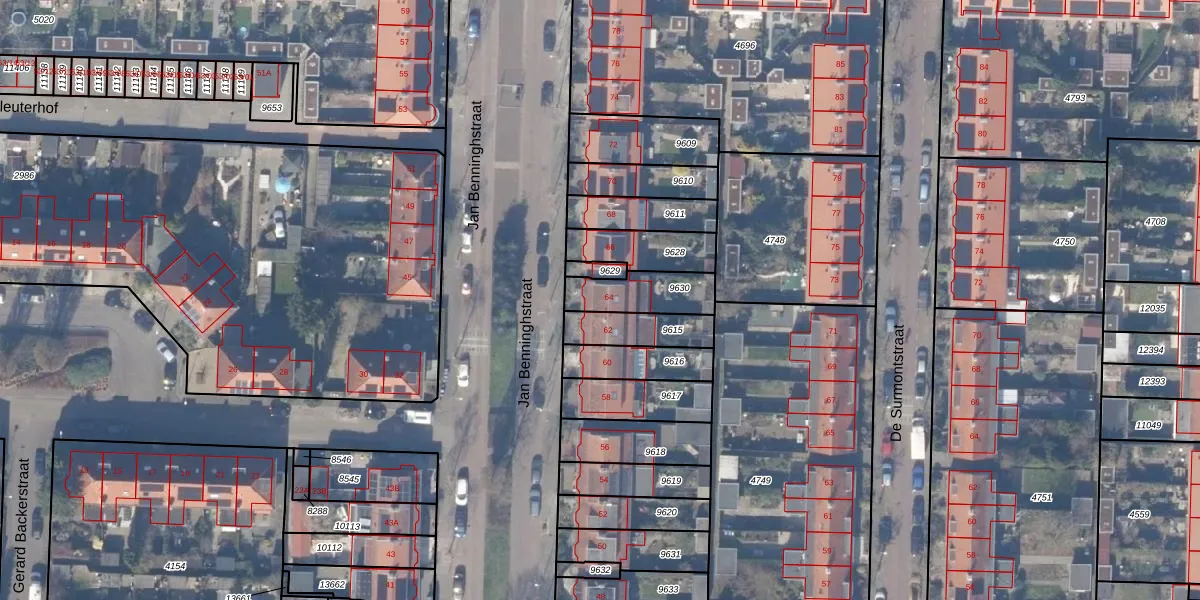 Jan Benninghstraat 64 is gelegen op kadastraal perceel ASV00H9630. Deze kadastrale aanduiding is uniek en wordt gebruikt door het Kadaster om eigendomsrechten en andere zakelijke rechten vast te leggen. Het perceel maakt onderdeel uit van de kadastrale gemeente Amstelveen.