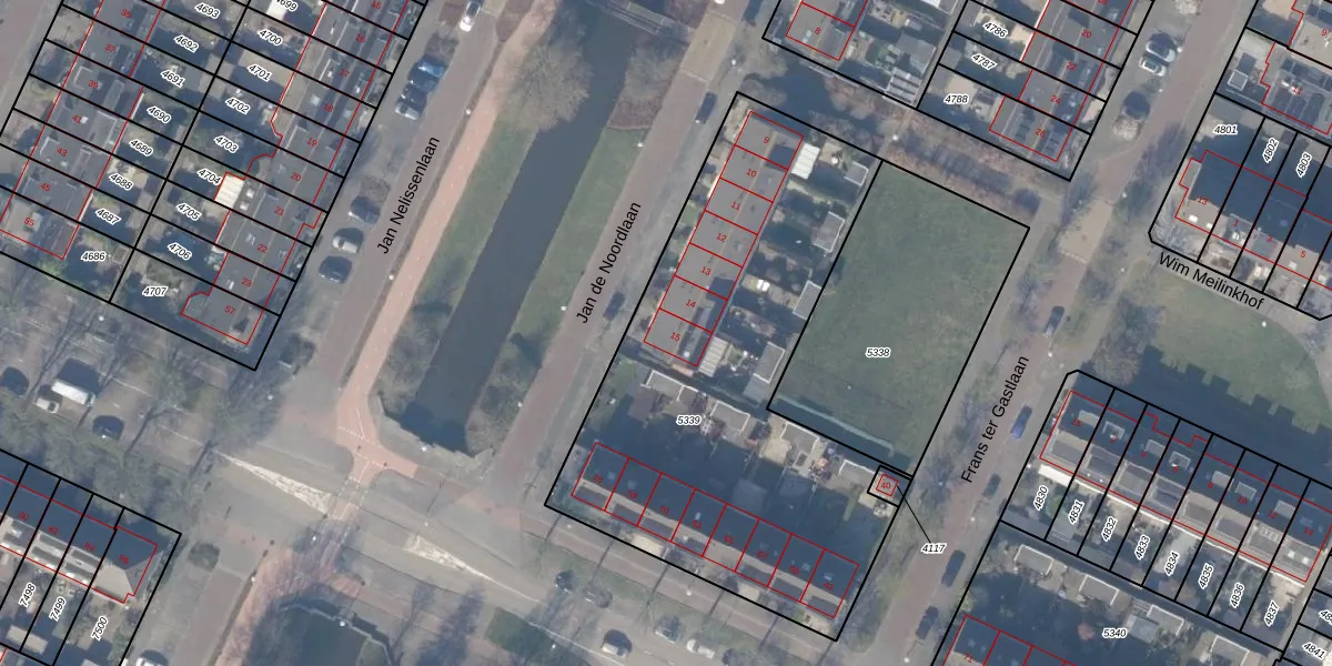 Jan de Noordlaan 15 is gelegen op kadastraal perceel ASV00O5339. Deze kadastrale aanduiding is uniek en wordt gebruikt door het Kadaster om eigendomsrechten en andere zakelijke rechten vast te leggen. Het perceel maakt onderdeel uit van de kadastrale gemeente Amstelveen.