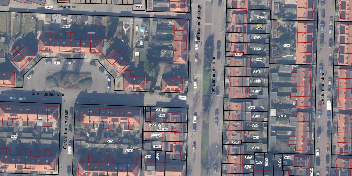 Het perceel waarop Jan Huddestraat 32 staat heeft een oppervlakte van 5145 m². Dit is een zeer groot perceel. De perceeloppervlakte wordt geregistreerd door het Kadaster. Gedetailleerde informatie over de maten van dit perceel kunt u vinden in het rapport Kadastrale kaart met maatvoering van Jan Huddestraat 32.