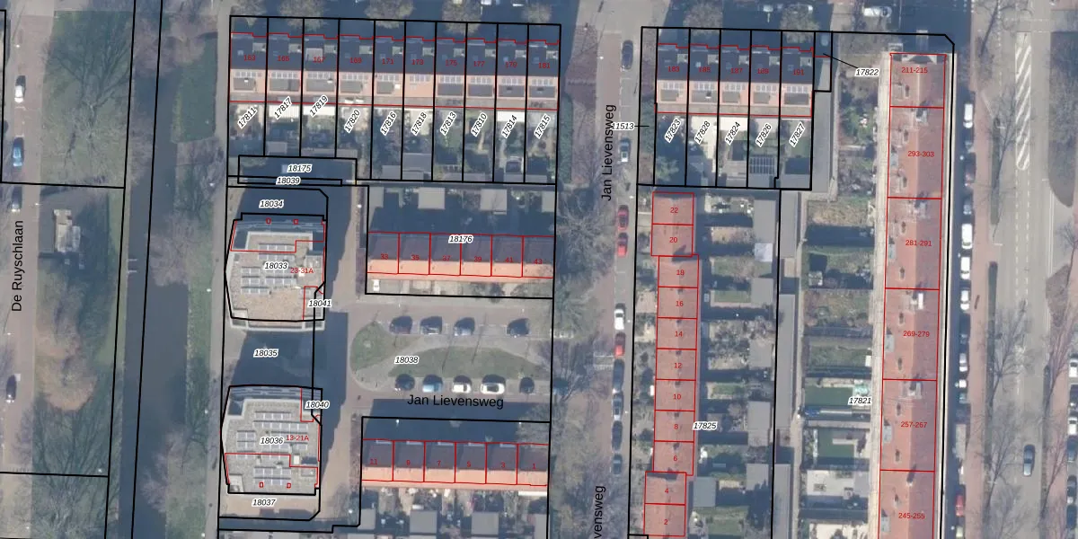 Jan Lievensweg 43 is gelegen op kadastraal perceel ASV00H18176. Deze kadastrale aanduiding is uniek en wordt gebruikt door het Kadaster om eigendomsrechten en andere zakelijke rechten vast te leggen. Het perceel maakt onderdeel uit van de kadastrale gemeente Amstelveen.