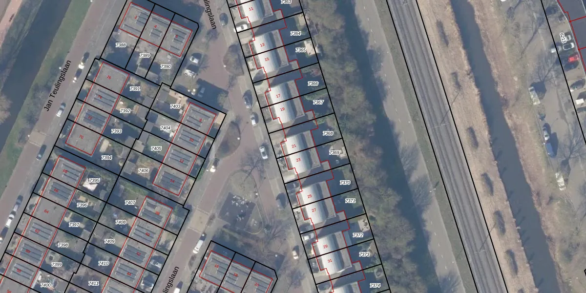 Jan Teulingslaan 21 is gelegen op kadastraal perceel ASV00O7368. Deze kadastrale aanduiding is uniek en wordt gebruikt door het Kadaster om eigendomsrechten en andere zakelijke rechten vast te leggen. Het perceel maakt onderdeel uit van de kadastrale gemeente Amstelveen.