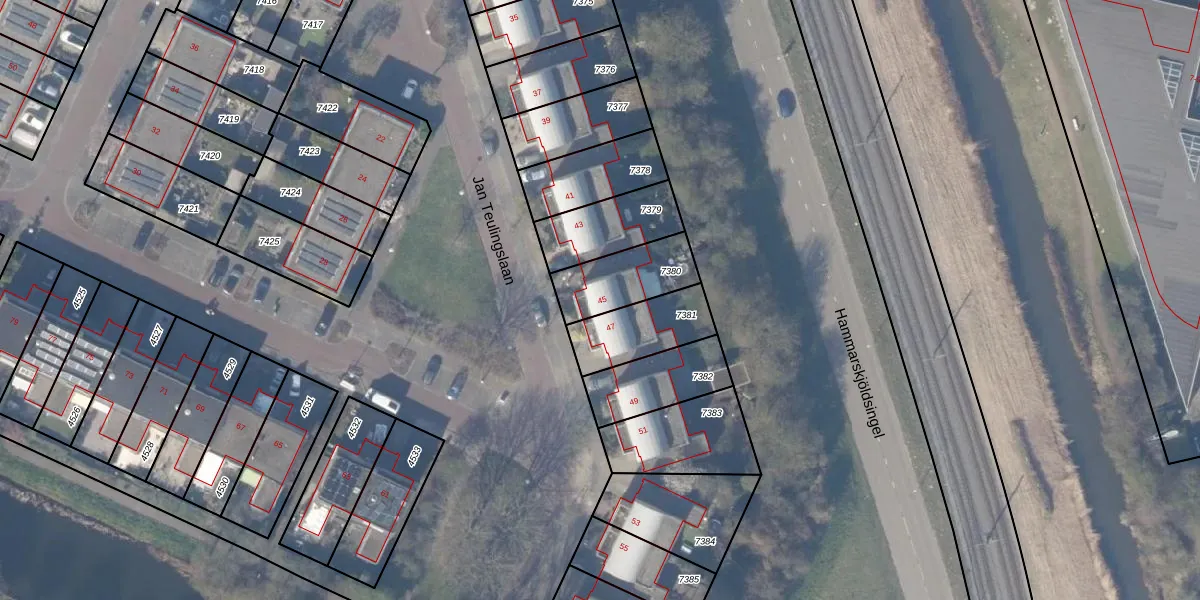 Jan Teulingslaan 45 is gelegen op kadastraal perceel ASV00O7380. Deze kadastrale aanduiding is uniek en wordt gebruikt door het Kadaster om eigendomsrechten en andere zakelijke rechten vast te leggen. Het perceel maakt onderdeel uit van de kadastrale gemeente Amstelveen.