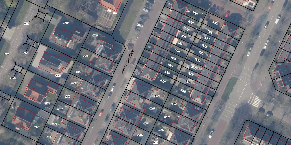 Jan Weilandlaan 19 is gelegen op kadastraal perceel ASV00O7435. Deze kadastrale aanduiding is uniek en wordt gebruikt door het Kadaster om eigendomsrechten en andere zakelijke rechten vast te leggen. Het perceel maakt onderdeel uit van de kadastrale gemeente Amstelveen.