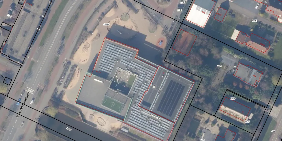 Het perceel waarop Jane Addamslaan 13 staat heeft een oppervlakte van 1,1 ha. Dit is een zeer groot perceel. De perceeloppervlakte wordt geregistreerd door het Kadaster. Gedetailleerde informatie over de maten van dit perceel kunt u vinden in het rapport Kadastrale kaart met maatvoering van Jane Addamslaan 13.