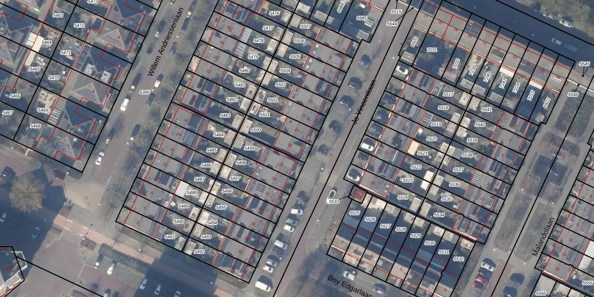 Gebruik de zoekbalk of klik op een perceel voor informatie over de adressen binnen dit perceel.