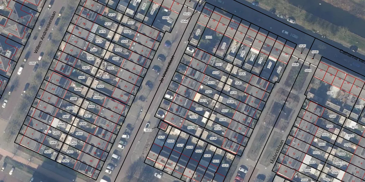 Gebruik de zoekbalk of klik op een perceel voor informatie over de adressen binnen dit perceel.