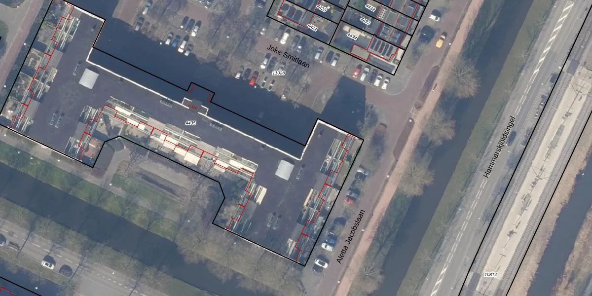 Joke Smitlaan 28-A is gelegen op kadastraal perceel ASV00O4435. Deze kadastrale aanduiding is uniek en wordt gebruikt door het Kadaster om eigendomsrechten en andere zakelijke rechten vast te leggen. Het perceel maakt onderdeel uit van de kadastrale gemeente Amstelveen.