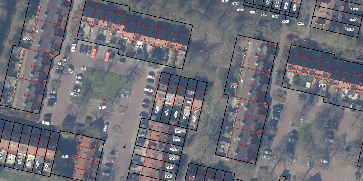 Gebruik de zoekbalk of klik op een perceel voor informatie over de adressen binnen dit perceel.