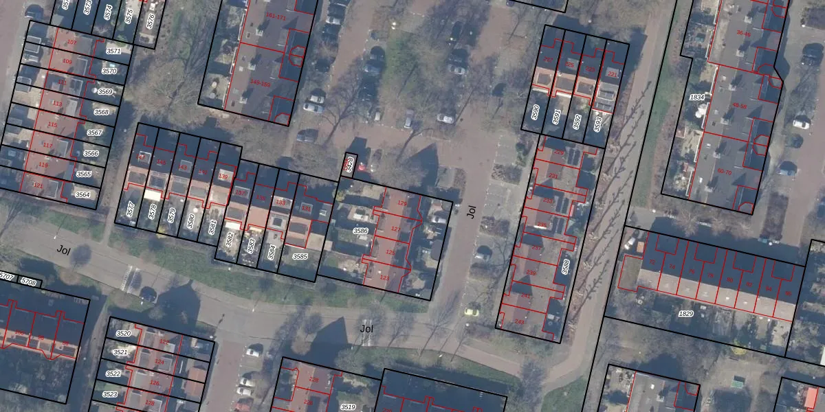 Het perceel waarop Jol 129 staat heeft een oppervlakte van 686 m². Dit is een groot perceel. De perceeloppervlakte wordt geregistreerd door het Kadaster. Gedetailleerde informatie over de maten van dit perceel kunt u vinden in het rapport Kadastrale kaart met maatvoering van Jol 129.