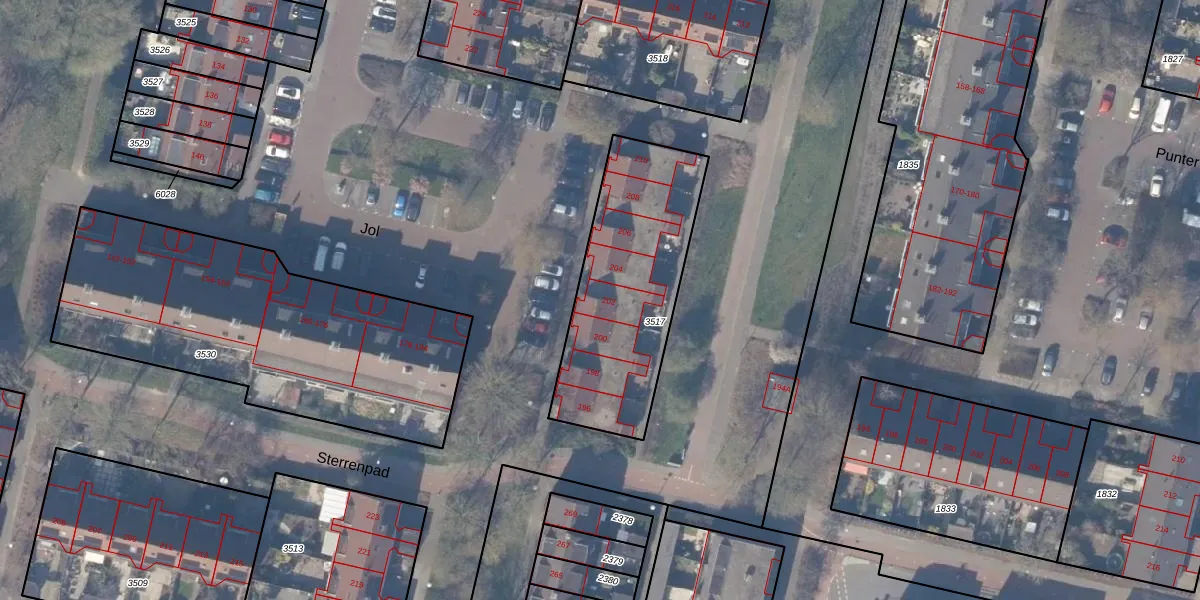 Het perceel waarop Jol 202 staat heeft een oppervlakte van 778 m². Dit is een groot perceel. De perceeloppervlakte wordt geregistreerd door het Kadaster. Gedetailleerde informatie over de maten van dit perceel kunt u vinden in het rapport Kadastrale kaart met maatvoering van Jol 202.