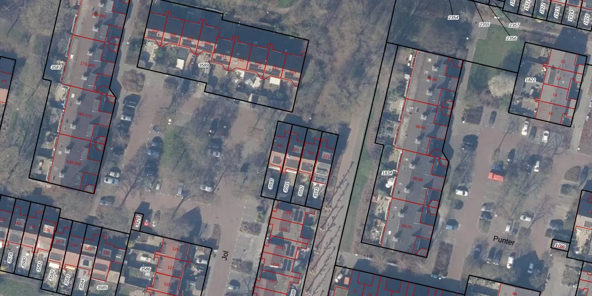 Gebruik de zoekbalk of klik op een perceel voor informatie over de adressen binnen dit perceel.