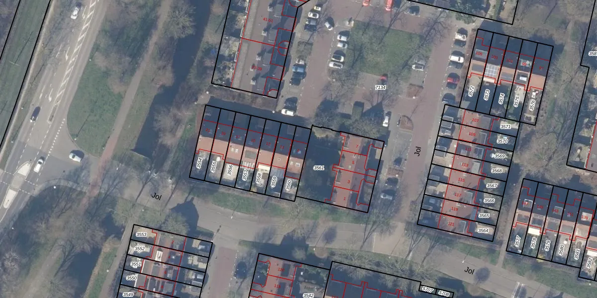 Het perceel waarop Jol 9 staat heeft een oppervlakte van 133 m². Dit is een middelgroot perceel. De perceeloppervlakte wordt geregistreerd door het Kadaster. Gedetailleerde informatie over de maten van dit perceel kunt u vinden in het rapport Kadastrale kaart met maatvoering van Jol 9.