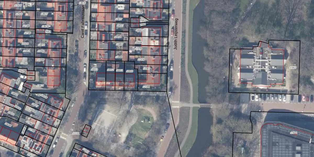 Judith Leijsterweg 35 is gelegen op kadastraal perceel ASV00H12184. Deze kadastrale aanduiding is uniek en wordt gebruikt door het Kadaster om eigendomsrechten en andere zakelijke rechten vast te leggen. Het perceel maakt onderdeel uit van de kadastrale gemeente Amstelveen.