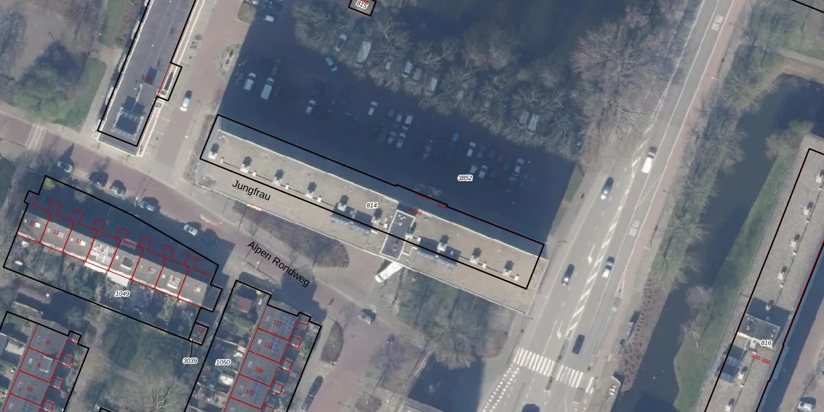Het perceel waarop Jungfrau 136 staat heeft een oppervlakte van 973 m². Dit is een groot perceel. De perceeloppervlakte wordt geregistreerd door het Kadaster. Gedetailleerde informatie over de maten van dit perceel kunt u vinden in het rapport Kadastrale kaart met maatvoering van Jungfrau 136.