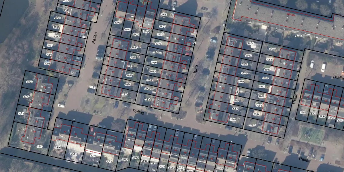 Het perceel waarop Juno 16 staat heeft een oppervlakte van 142 m². Dit is een middelgroot perceel. De perceeloppervlakte wordt geregistreerd door het Kadaster. Gedetailleerde informatie over de maten van dit perceel kunt u vinden in het rapport Kadastrale kaart met maatvoering van Juno 16.