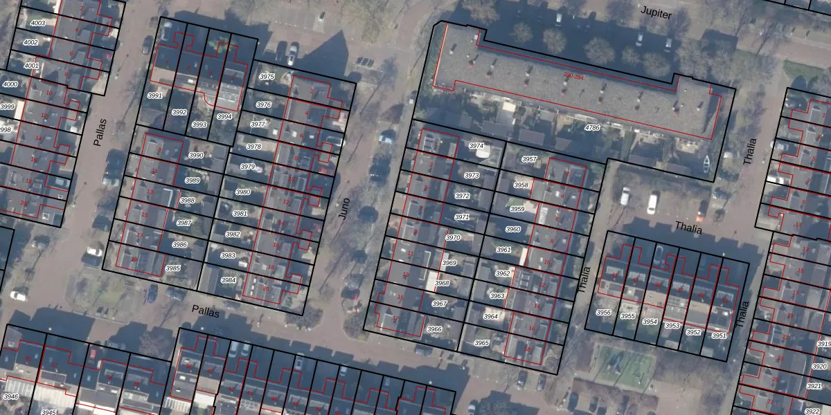 Gebruik de zoekbalk of klik op een perceel voor informatie over de adressen binnen dit perceel.