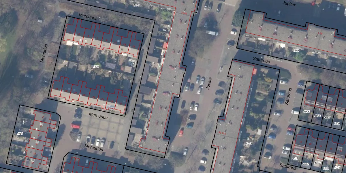 Het perceel waarop Jupiter 102 staat heeft een oppervlakte van 3354 m². Dit is een zeer groot perceel. De perceeloppervlakte wordt geregistreerd door het Kadaster. Gedetailleerde informatie over de maten van dit perceel kunt u vinden in het rapport Kadastrale kaart met maatvoering van Jupiter 102.