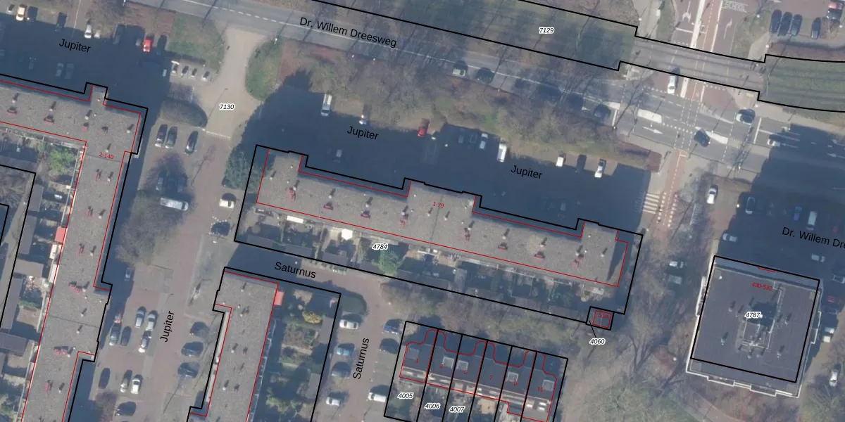 Het perceel waarop Jupiter 11 staat heeft een oppervlakte van 2050 m². Dit is een zeer groot perceel. De perceeloppervlakte wordt geregistreerd door het Kadaster. Gedetailleerde informatie over de maten van dit perceel kunt u vinden in het rapport Kadastrale kaart met maatvoering van Jupiter 11.