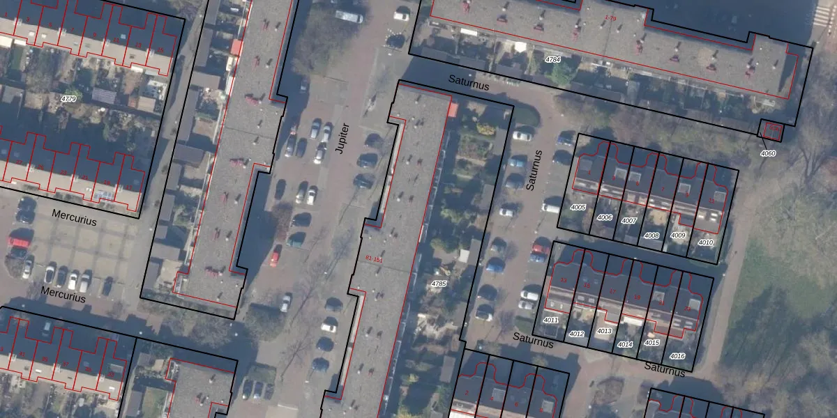 Het perceel waarop Jupiter 111 staat heeft een oppervlakte van 2430 m². Dit is een zeer groot perceel. De perceeloppervlakte wordt geregistreerd door het Kadaster. Gedetailleerde informatie over de maten van dit perceel kunt u vinden in het rapport Kadastrale kaart met maatvoering van Jupiter 111.