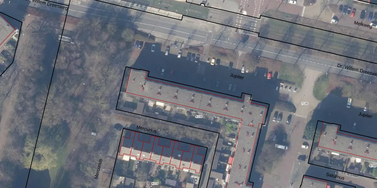 Jupiter 12 is gelegen op kadastraal perceel ASV00M4778. Deze kadastrale aanduiding is uniek en wordt gebruikt door het Kadaster om eigendomsrechten en andere zakelijke rechten vast te leggen. Het perceel maakt onderdeel uit van de kadastrale gemeente Amstelveen.