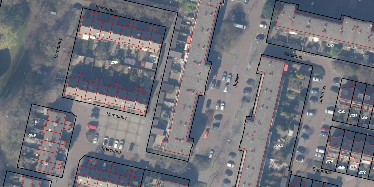 Het perceel waarop Jupiter 124 staat heeft een oppervlakte van 3354 m². Dit is een zeer groot perceel. De perceeloppervlakte wordt geregistreerd door het Kadaster. Gedetailleerde informatie over de maten van dit perceel kunt u vinden in het rapport Kadastrale kaart met maatvoering van Jupiter 124.
