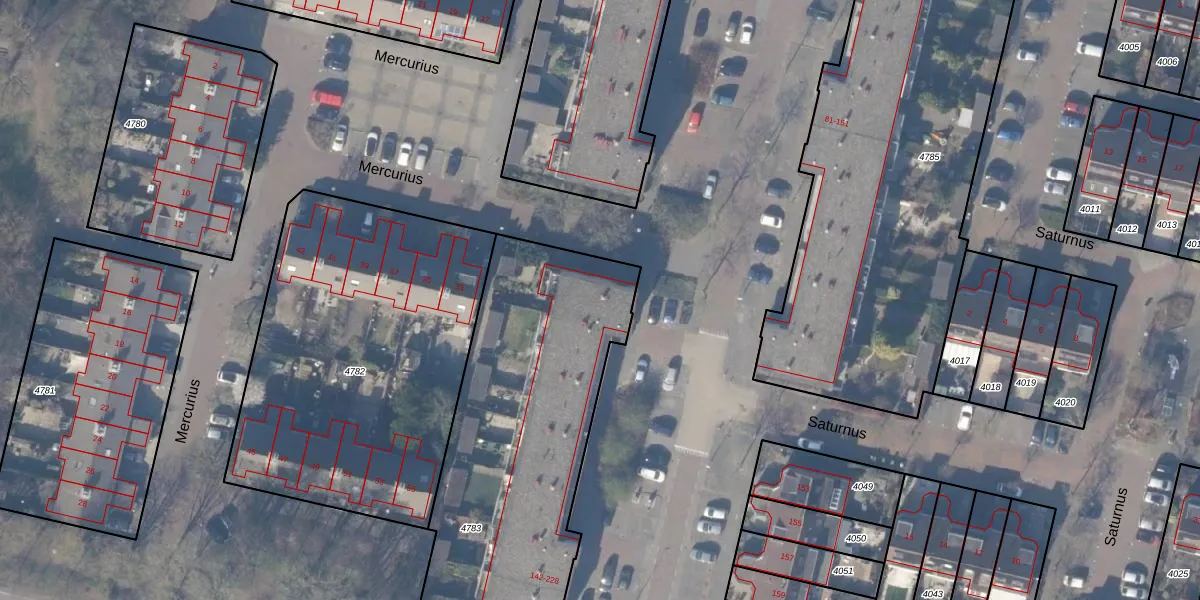 Het perceel waarop Jupiter 142 staat heeft een oppervlakte van 2466 m². Dit is een zeer groot perceel. De perceeloppervlakte wordt geregistreerd door het Kadaster. Gedetailleerde informatie over de maten van dit perceel kunt u vinden in het rapport Kadastrale kaart met maatvoering van Jupiter 142.