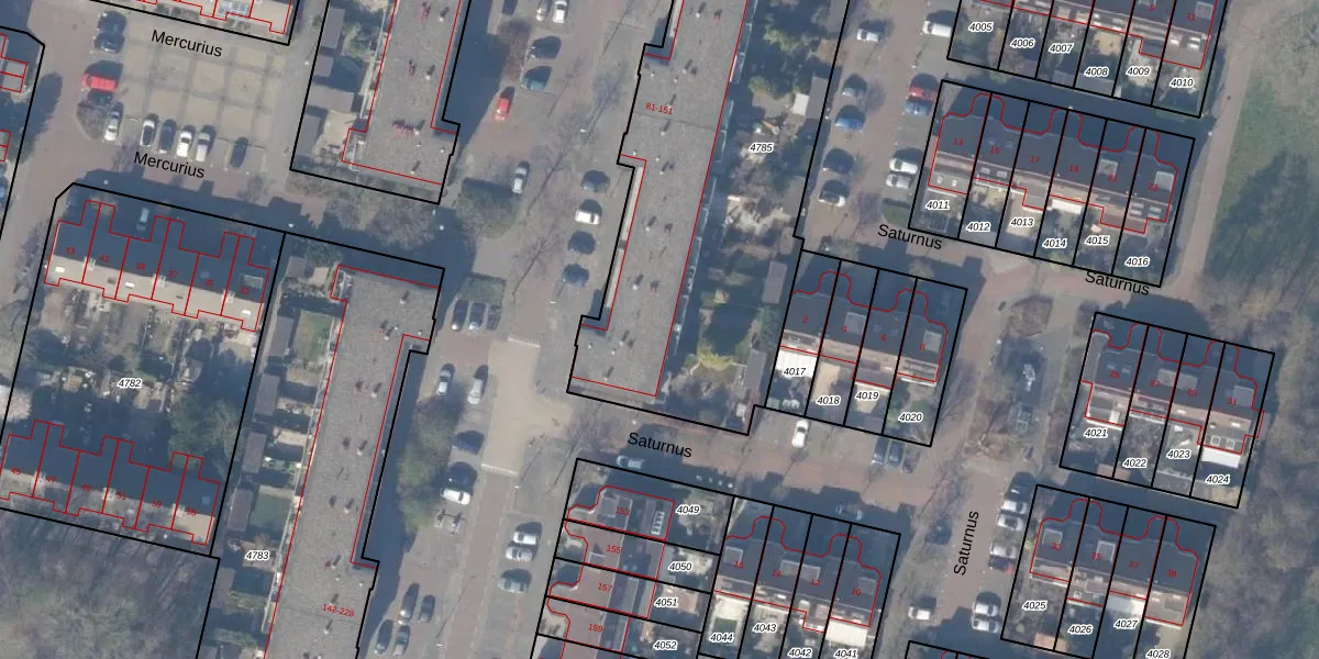 Het perceel waarop Jupiter 149 staat heeft een oppervlakte van 2430 m². Dit is een zeer groot perceel. De perceeloppervlakte wordt geregistreerd door het Kadaster. Gedetailleerde informatie over de maten van dit perceel kunt u vinden in het rapport Kadastrale kaart met maatvoering van Jupiter 149.