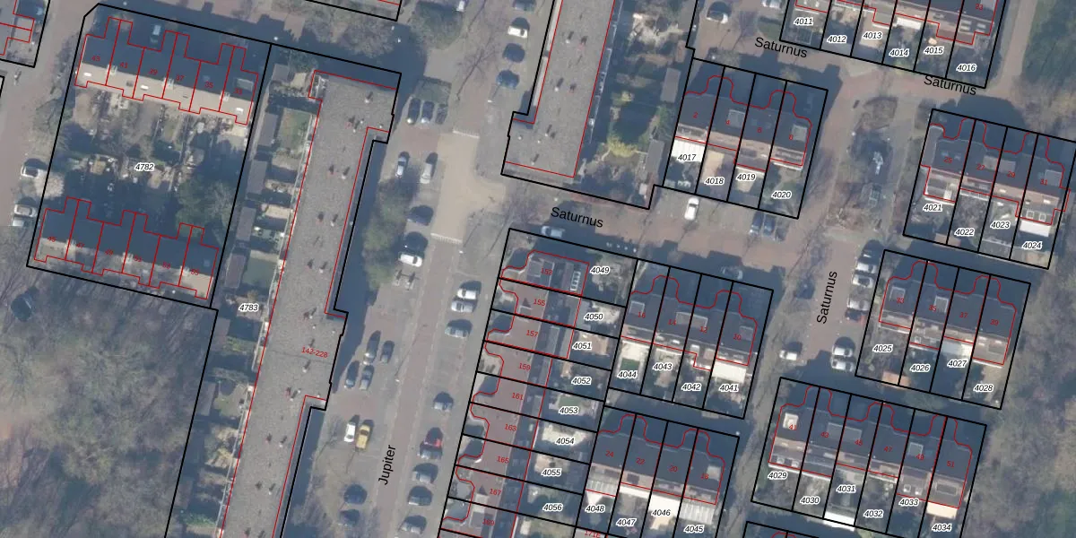 Gebruik de zoekbalk of klik op een perceel voor informatie over de adressen binnen dit perceel.