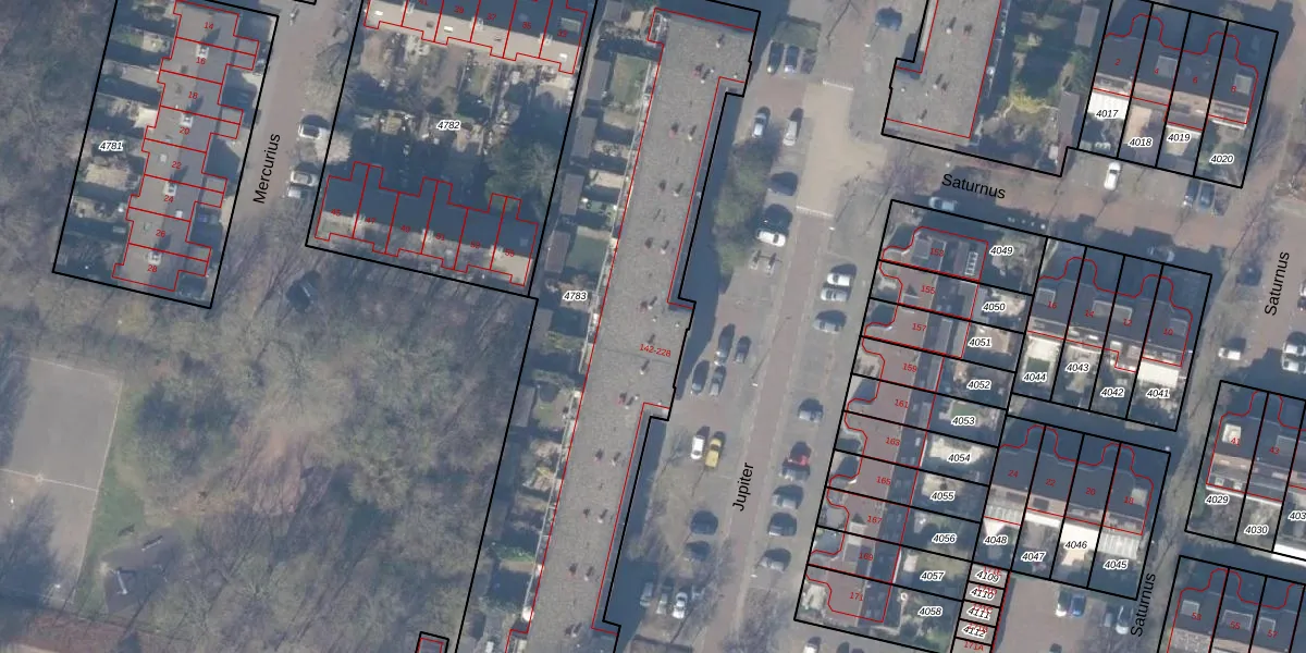 Het perceel waarop Jupiter 156 staat heeft een oppervlakte van 2466 m². Dit is een zeer groot perceel. De perceeloppervlakte wordt geregistreerd door het Kadaster. Gedetailleerde informatie over de maten van dit perceel kunt u vinden in het rapport Kadastrale kaart met maatvoering van Jupiter 156.