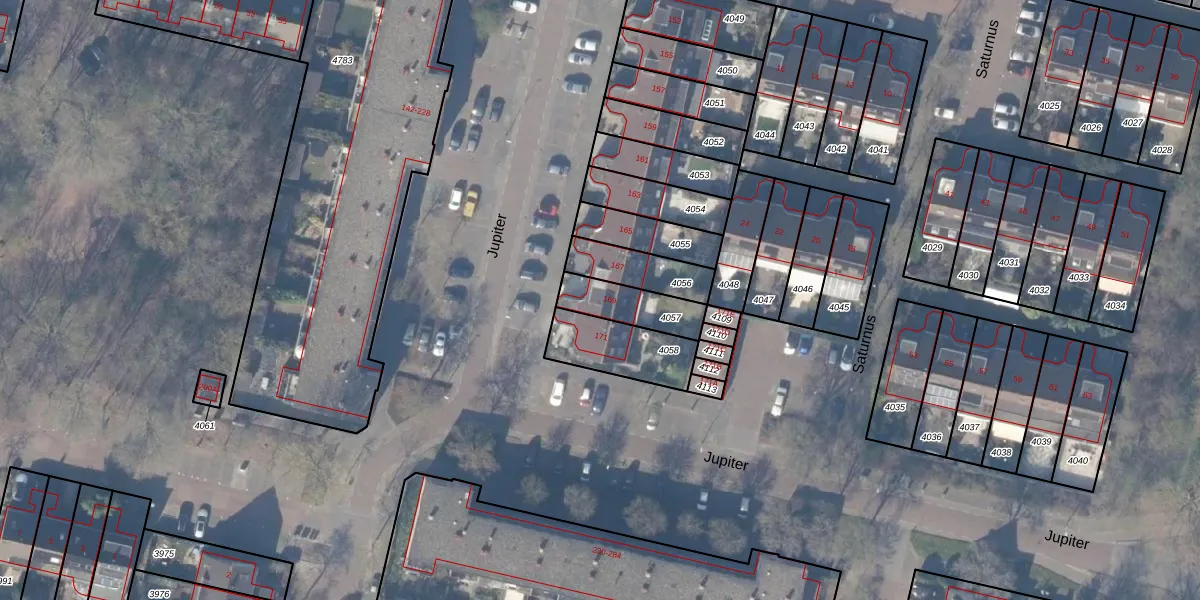 Het perceel waarop Jupiter 169 staat heeft een oppervlakte van 147 m². Dit is een middelgroot perceel. De perceeloppervlakte wordt geregistreerd door het Kadaster. Gedetailleerde informatie over de maten van dit perceel kunt u vinden in het rapport Kadastrale kaart met maatvoering van Jupiter 169.