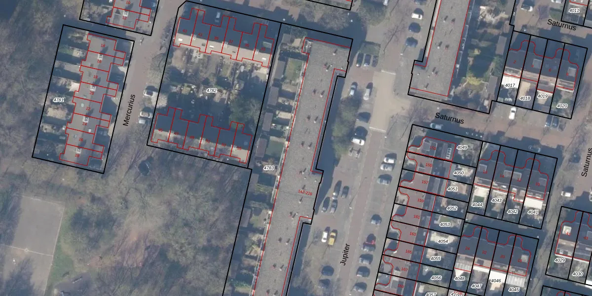Het perceel waarop Jupiter 180 staat heeft een oppervlakte van 2466 m². Dit is een zeer groot perceel. De perceeloppervlakte wordt geregistreerd door het Kadaster. Gedetailleerde informatie over de maten van dit perceel kunt u vinden in het rapport Kadastrale kaart met maatvoering van Jupiter 180.