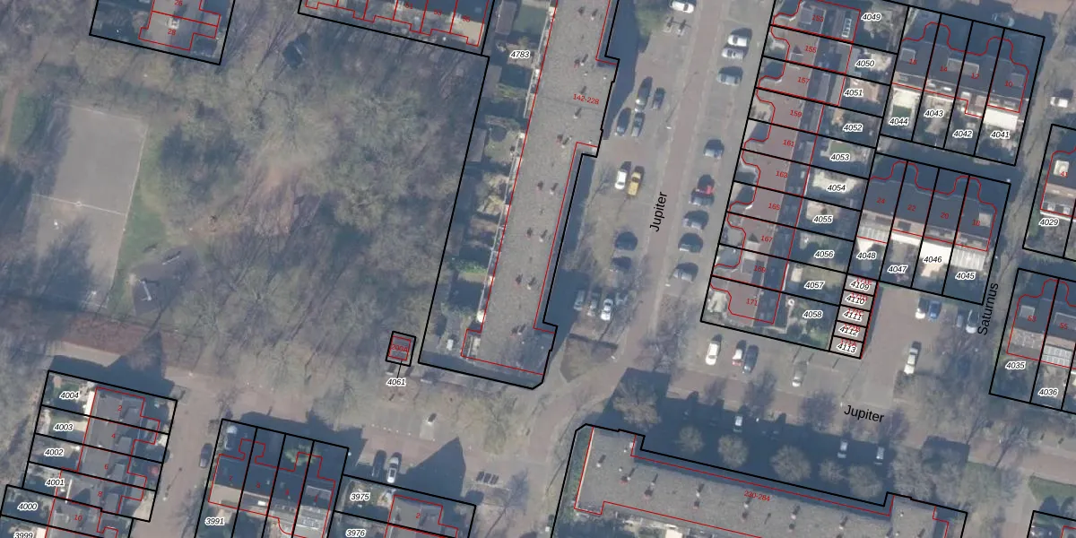 Het perceel waarop Jupiter 196 staat heeft een oppervlakte van 2466 m². Dit is een zeer groot perceel. De perceeloppervlakte wordt geregistreerd door het Kadaster. Gedetailleerde informatie over de maten van dit perceel kunt u vinden in het rapport Kadastrale kaart met maatvoering van Jupiter 196.
