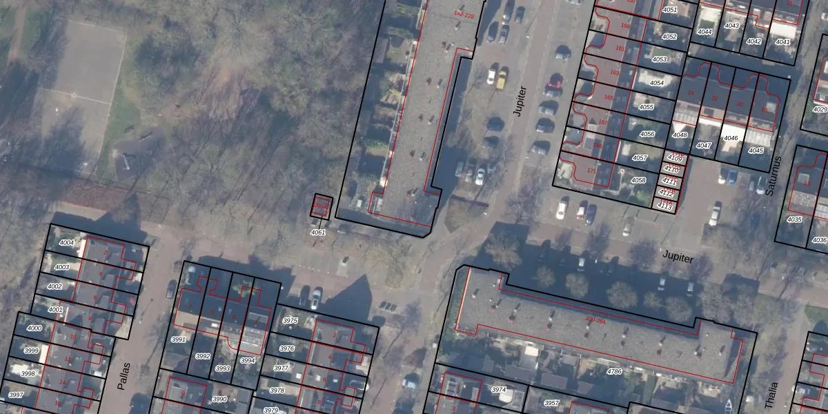 Het perceel waarop Jupiter 200 staat heeft een oppervlakte van 2466 m². Dit is een zeer groot perceel. De perceeloppervlakte wordt geregistreerd door het Kadaster. Gedetailleerde informatie over de maten van dit perceel kunt u vinden in het rapport Kadastrale kaart met maatvoering van Jupiter 200.