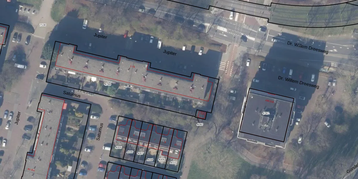 Jupiter 71 is gelegen op kadastraal perceel ASV00M4784. Deze kadastrale aanduiding is uniek en wordt gebruikt door het Kadaster om eigendomsrechten en andere zakelijke rechten vast te leggen. Het perceel maakt onderdeel uit van de kadastrale gemeente Amstelveen.