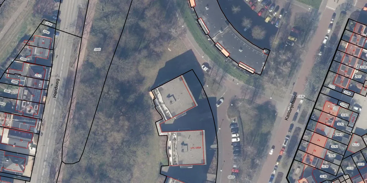 Kastanjelaan 179 is gelegen op kadastraal perceel ASV00M5047. Deze kadastrale aanduiding is uniek en wordt gebruikt door het Kadaster om eigendomsrechten en andere zakelijke rechten vast te leggen. Het perceel maakt onderdeel uit van de kadastrale gemeente Amstelveen.