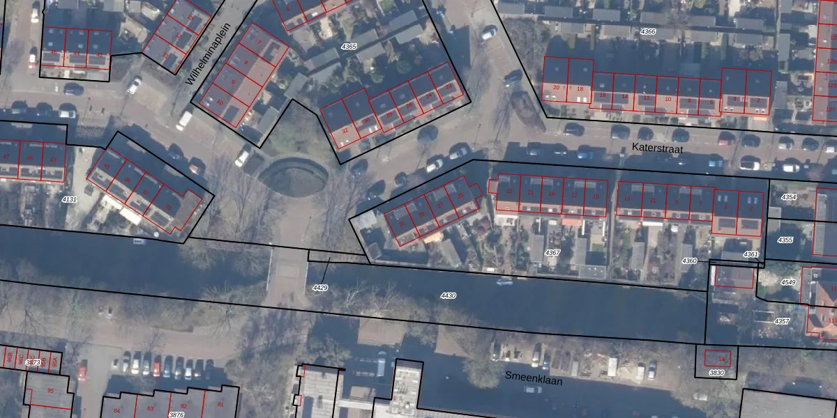 Katerstraat 29 is gelegen op kadastraal perceel ASV00G4367. Deze kadastrale aanduiding is uniek en wordt gebruikt door het Kadaster om eigendomsrechten en andere zakelijke rechten vast te leggen. Het perceel maakt onderdeel uit van de kadastrale gemeente Amstelveen.