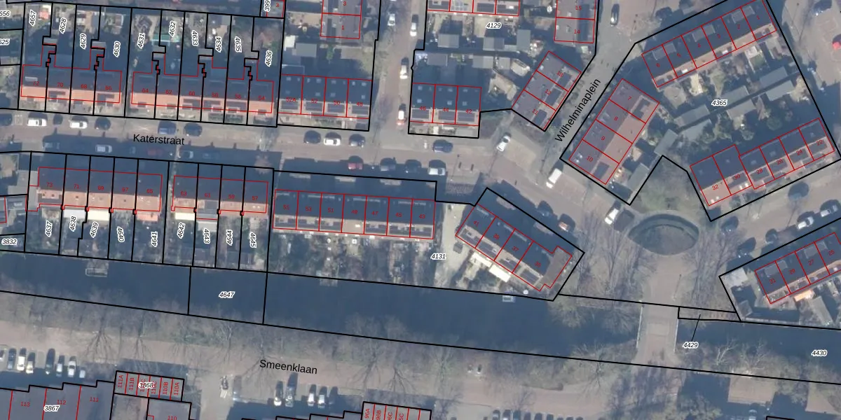 Katerstraat 43 is gelegen op kadastraal perceel ASV00G4131. Deze kadastrale aanduiding is uniek en wordt gebruikt door het Kadaster om eigendomsrechten en andere zakelijke rechten vast te leggen. Het perceel maakt onderdeel uit van de kadastrale gemeente Amstelveen.