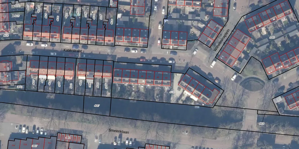 Het perceel waarop Katerstraat 47 staat heeft een oppervlakte van 1601 m². Dit is een zeer groot perceel. De perceeloppervlakte wordt geregistreerd door het Kadaster. Gedetailleerde informatie over de maten van dit perceel kunt u vinden in het rapport Kadastrale kaart met maatvoering van Katerstraat 47.