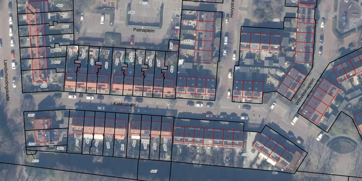 Katerstraat 52-A is gelegen op kadastraal perceel ASV00G4305. Deze kadastrale aanduiding is uniek en wordt gebruikt door het Kadaster om eigendomsrechten en andere zakelijke rechten vast te leggen. Het perceel maakt onderdeel uit van de kadastrale gemeente Amstelveen.